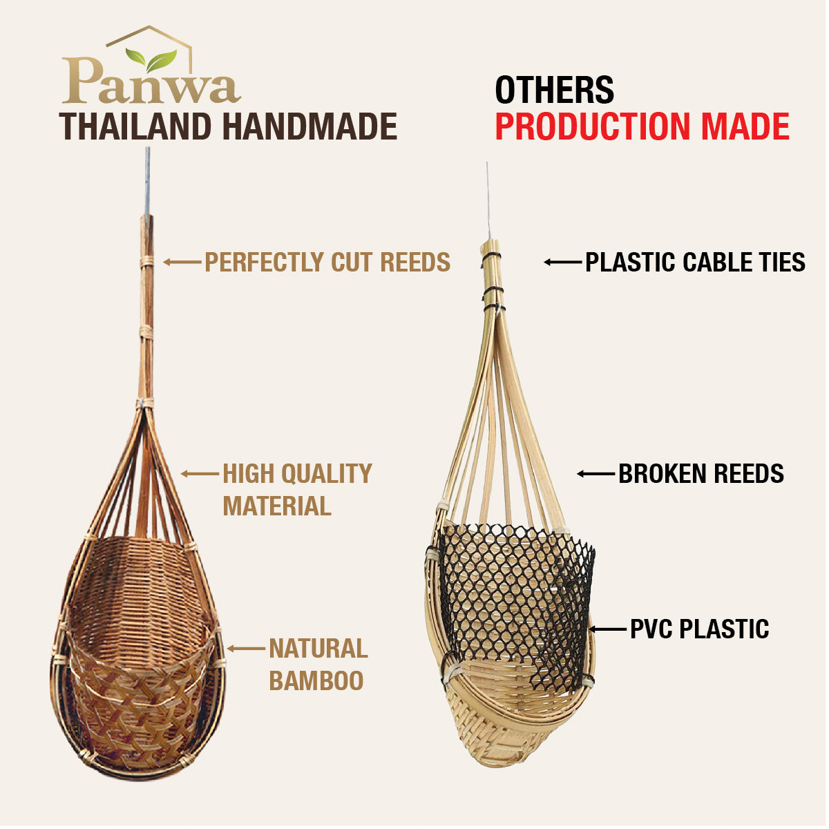 🌱 TOTALLY UNIQUE: Handcrafted in the Northeastern villages of Thailand, these style of hanging orchid baskets are beautifully designed for both form and function. The dark natural wood color is created from soaking and drying the reeds. This time honored process enhances each orchid planter’s unique appearance.
